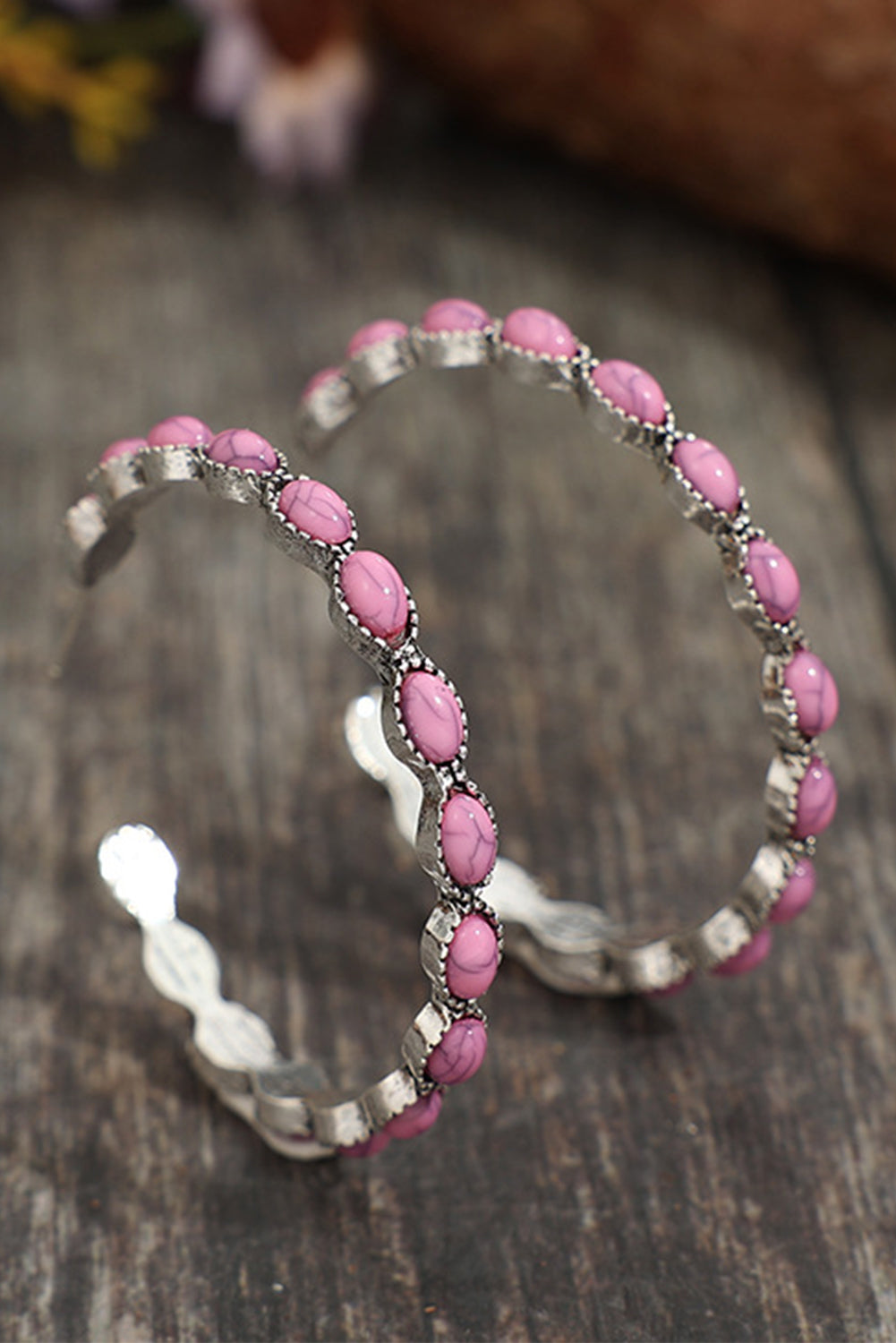 - Retro-inspired C-shape earrings with exquisite gem inlay